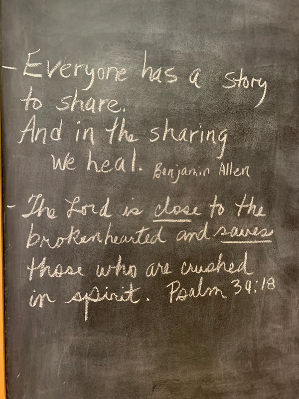 "I am deeply sorry that you are eligible for this group. However, I am so glad you are here! God moves. When things are hidden and come out into the light, He can heal. We try to be “strong” and, in turn, we limit God to heal and use us. It is hard to show others your vulnerable side. Through this process, however, it does bring healing. As difficult as it may be, it is worth it: You will leave stronger, because you were able to open up and share feelings that possibly you haven't told anyone.This is a safe place. God hears you and He will delivery you. May the peace that passes all understanding [comfort] you."
